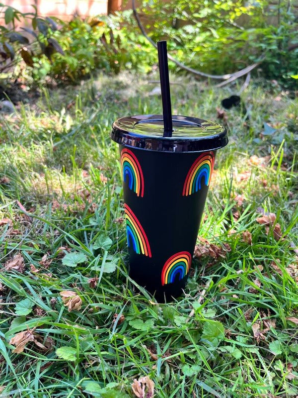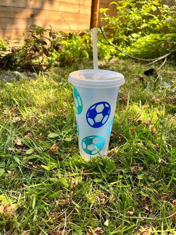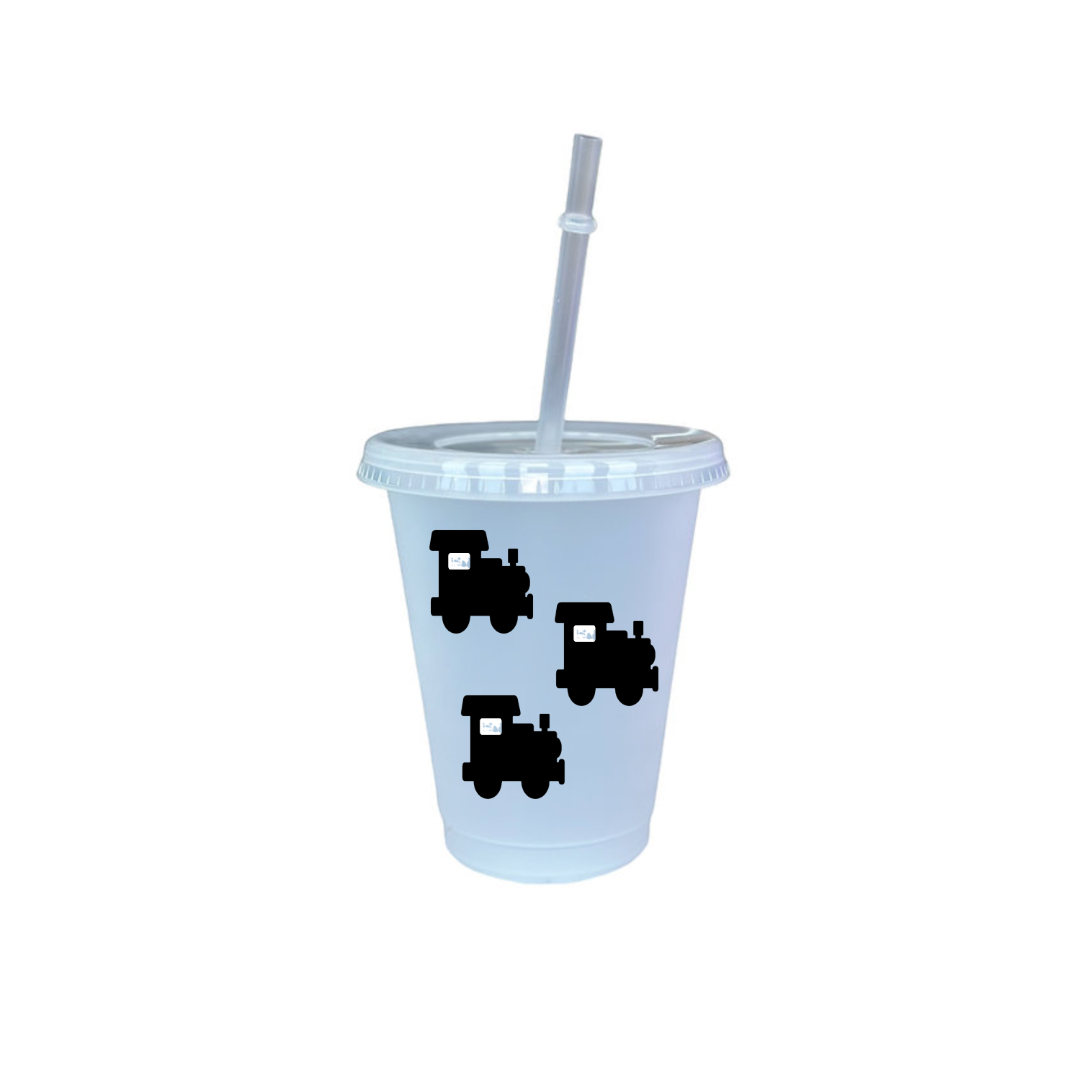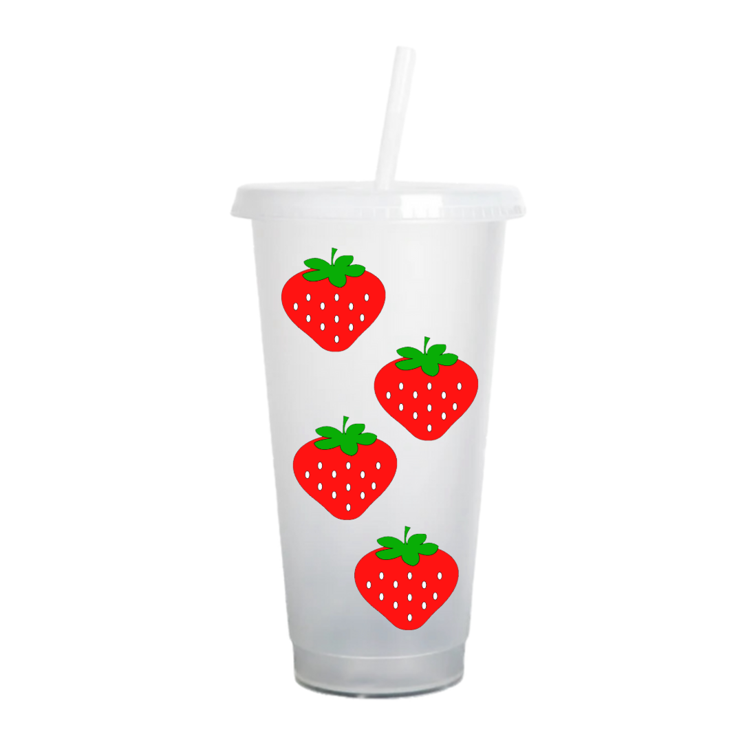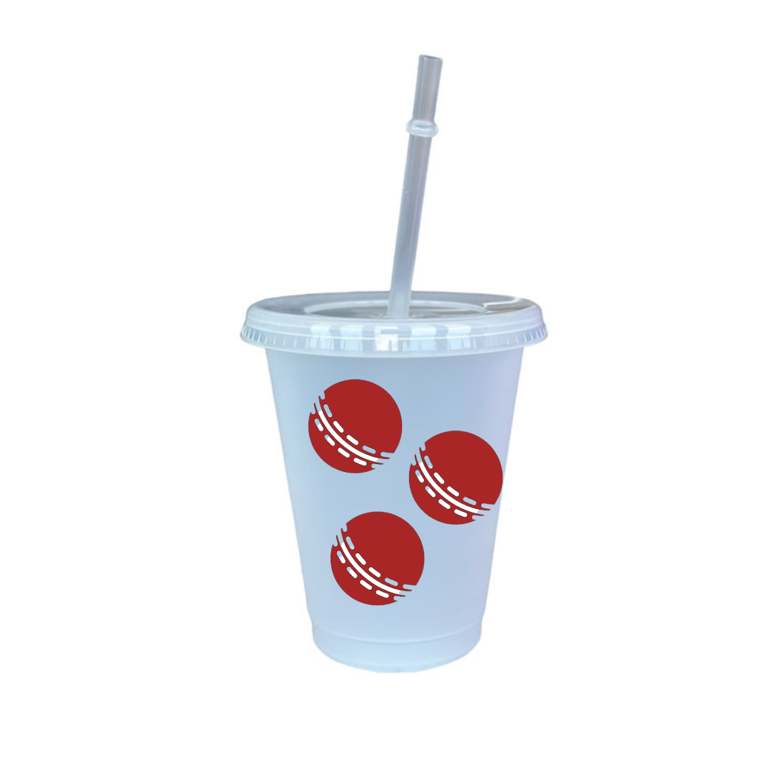 Plastic cold cup with straw, customised with design on your choice.