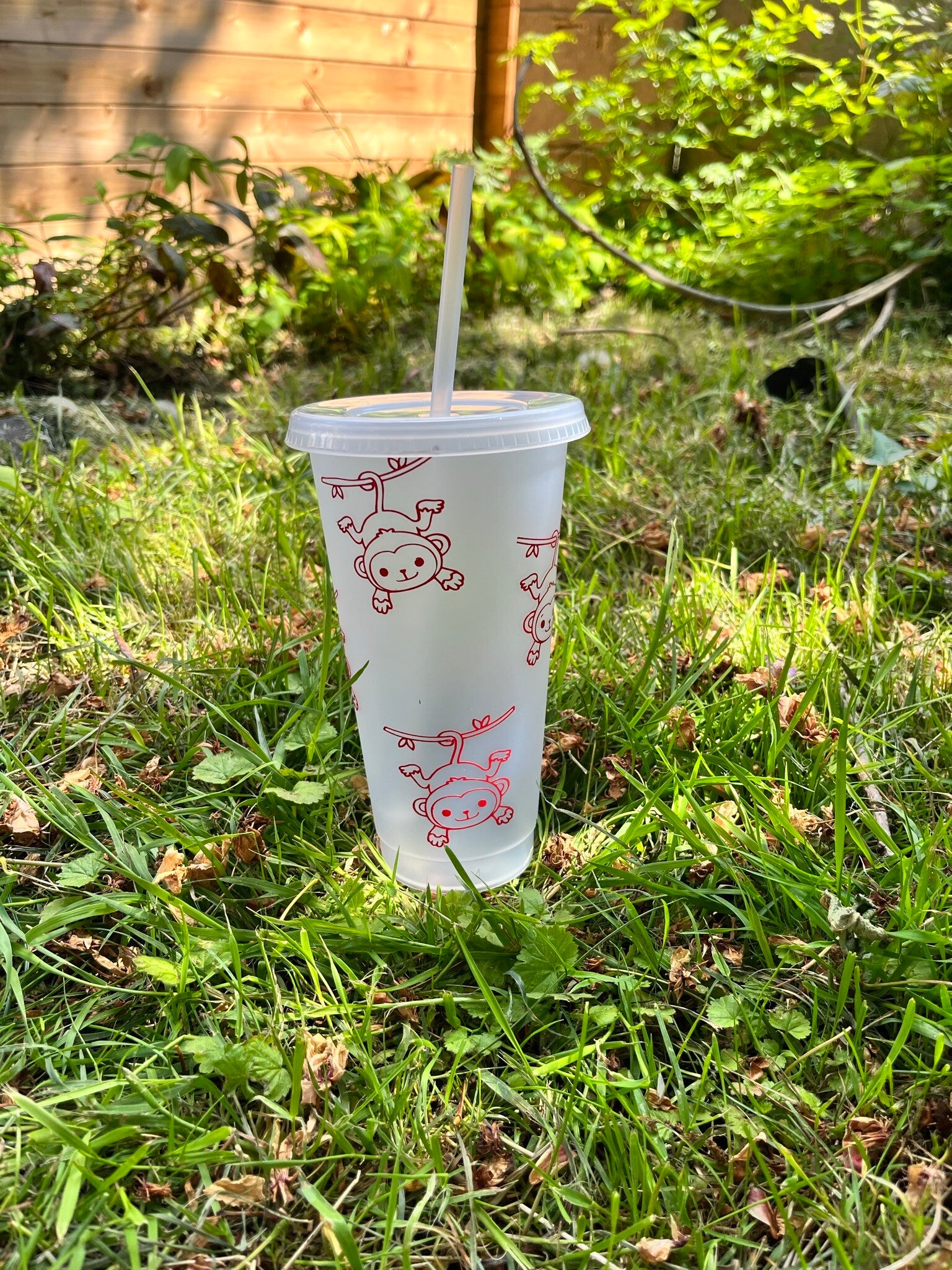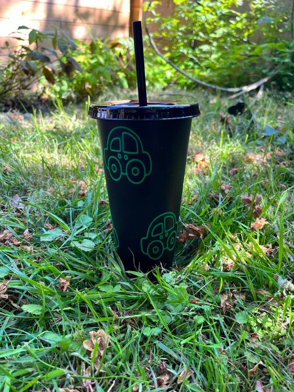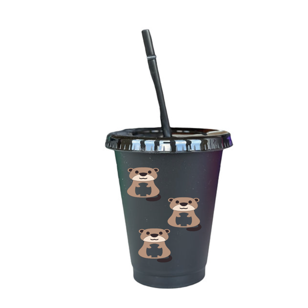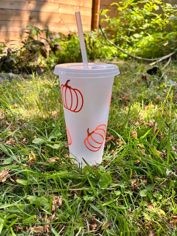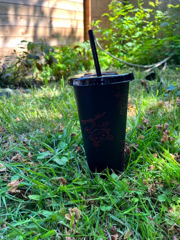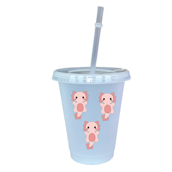 Plastic cold cup with straw, customised with design on your choice.