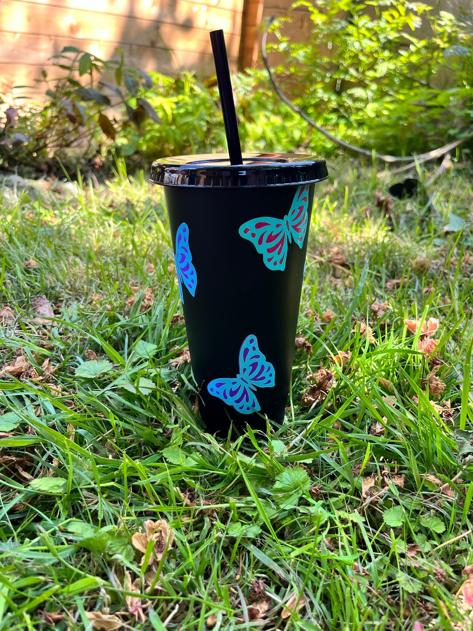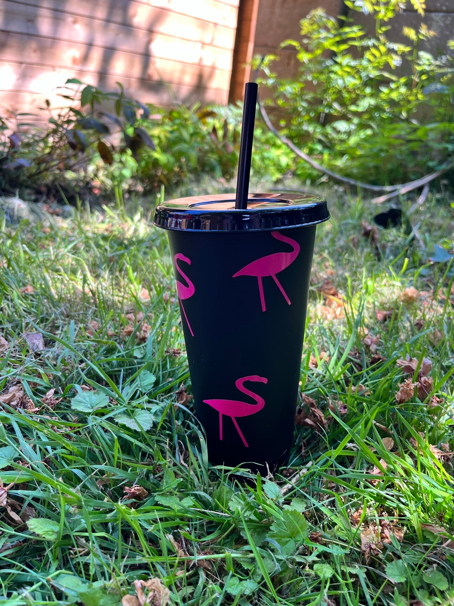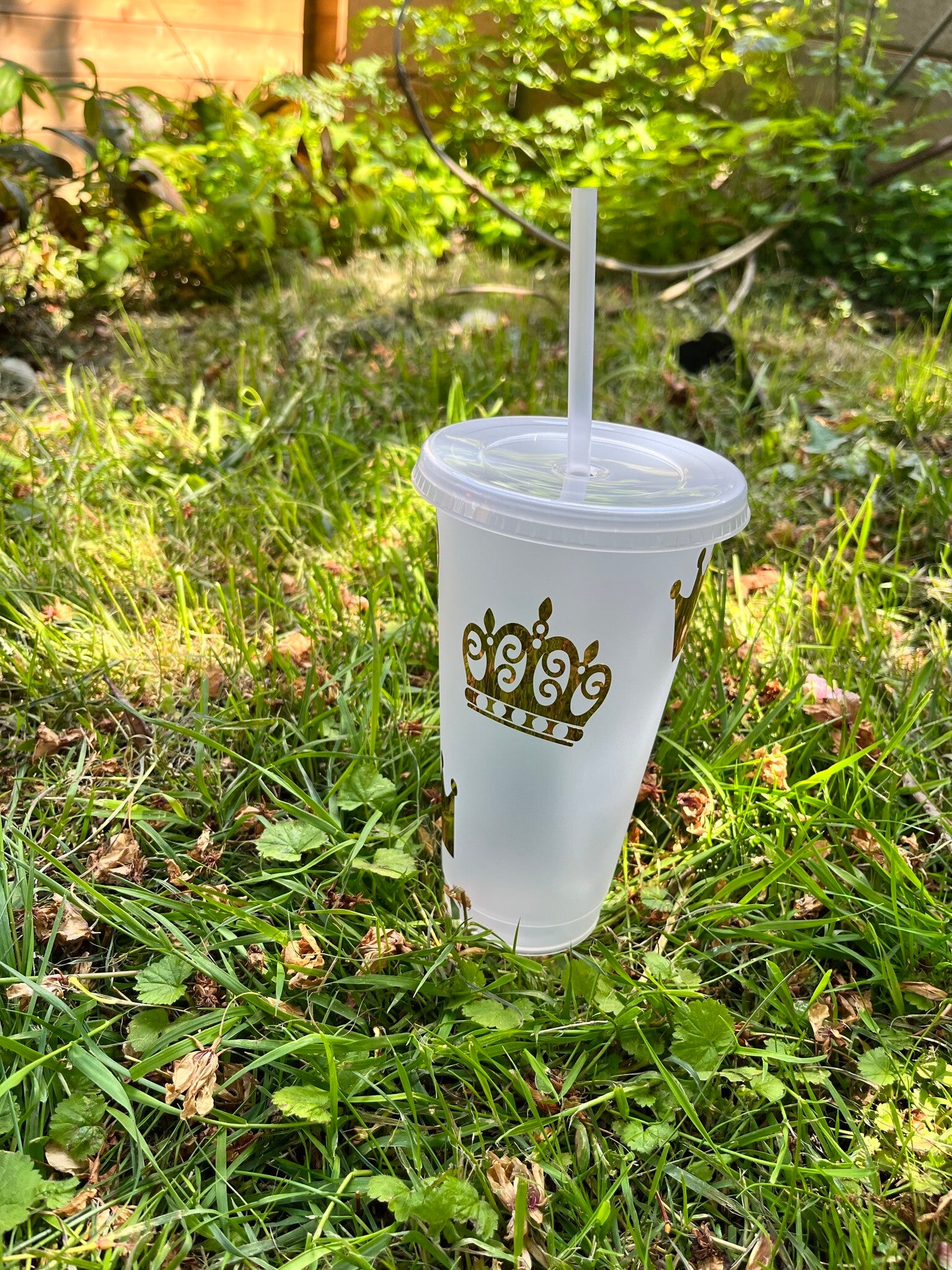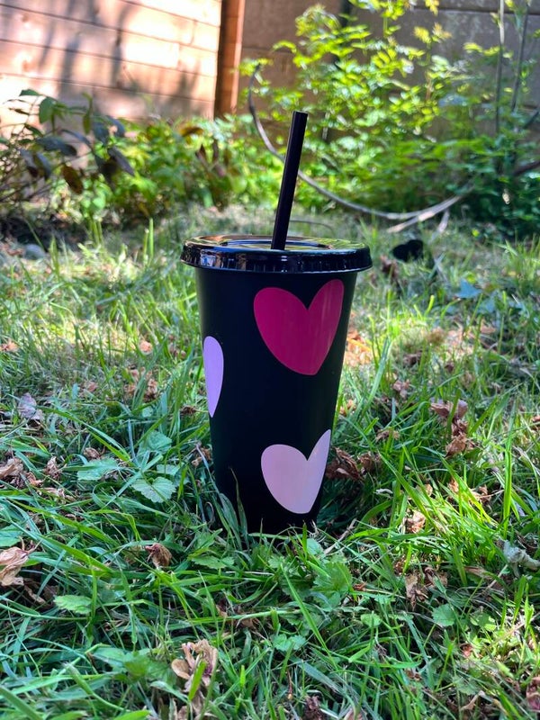 Plastic cold cup with straw, customised with design on your choice.